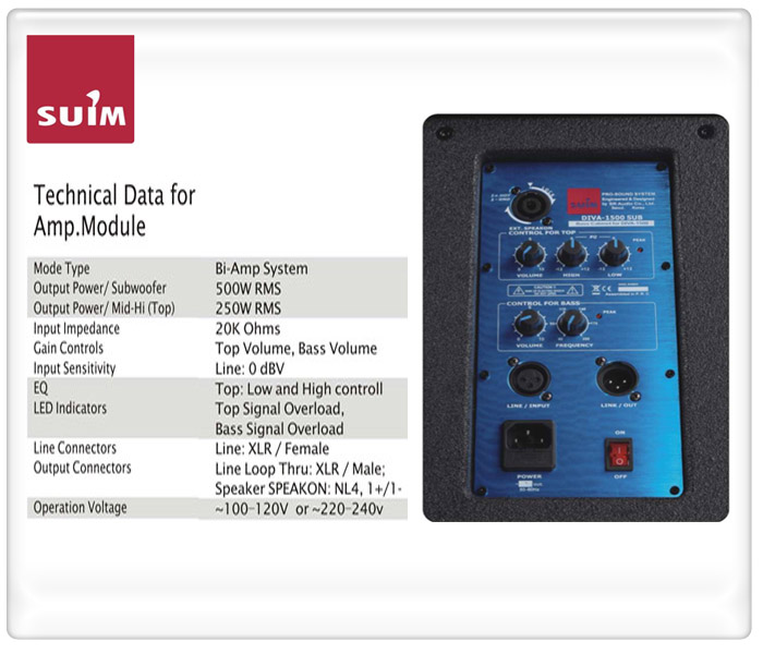 Bi-Amp System으로 RMS 500W 의 Amp 가 장착된 앰프 내장형 Sub Woofer System 이다