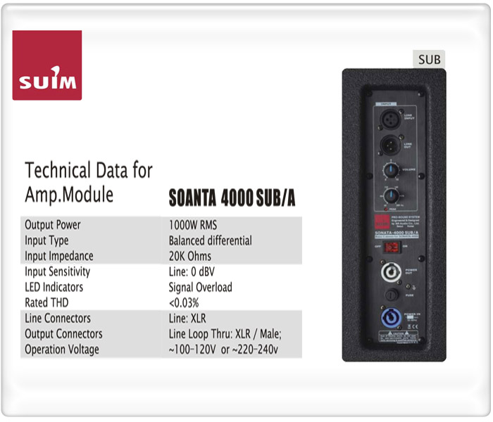 SONATA 4000 TOP/A 와 한Set 를 이루는 18" Bass reflex type의 SUB Woofer이다.